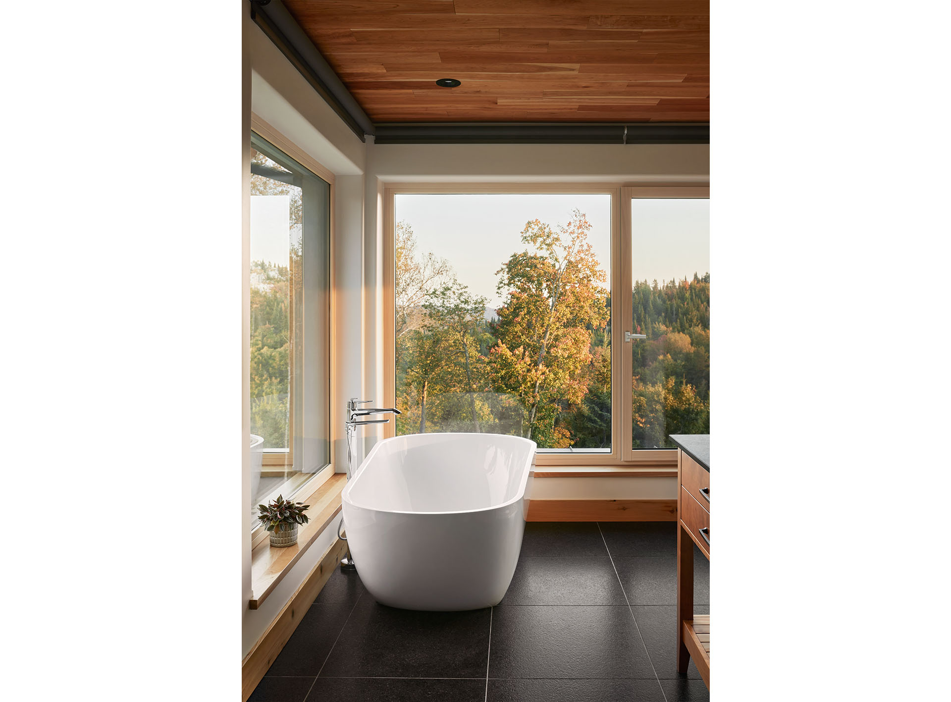 Dans toute sa simplicité, la demeure s’intègre harmonieusement à son environnement, suivant le rythme des saisons et les humeurs changeantes de la nature. Au final, ce sont les habitants qui, chaque jour, se laissent inspirer par cette beauté tranquille et bénéficient d’un cadre de vie sain et unique.