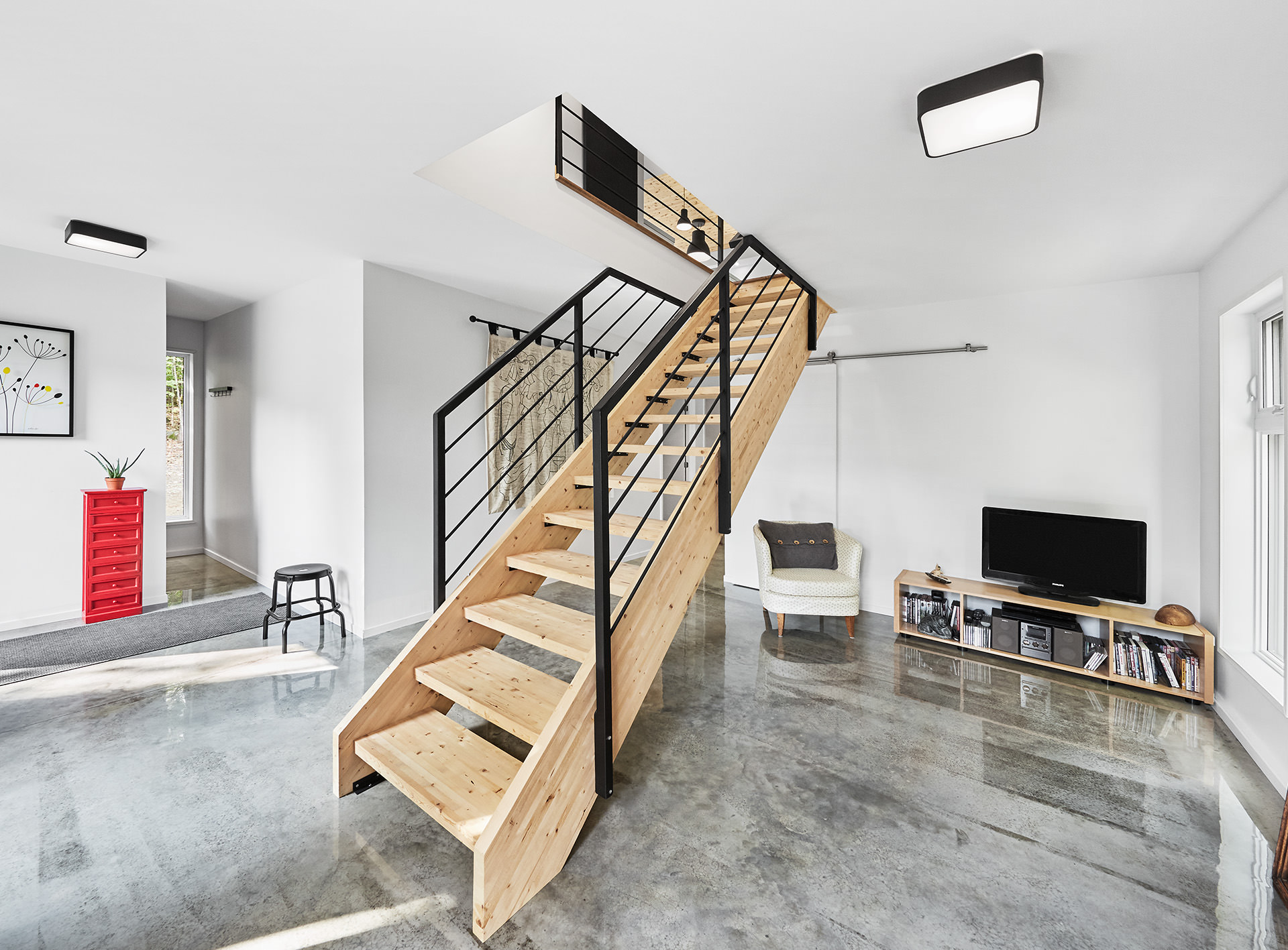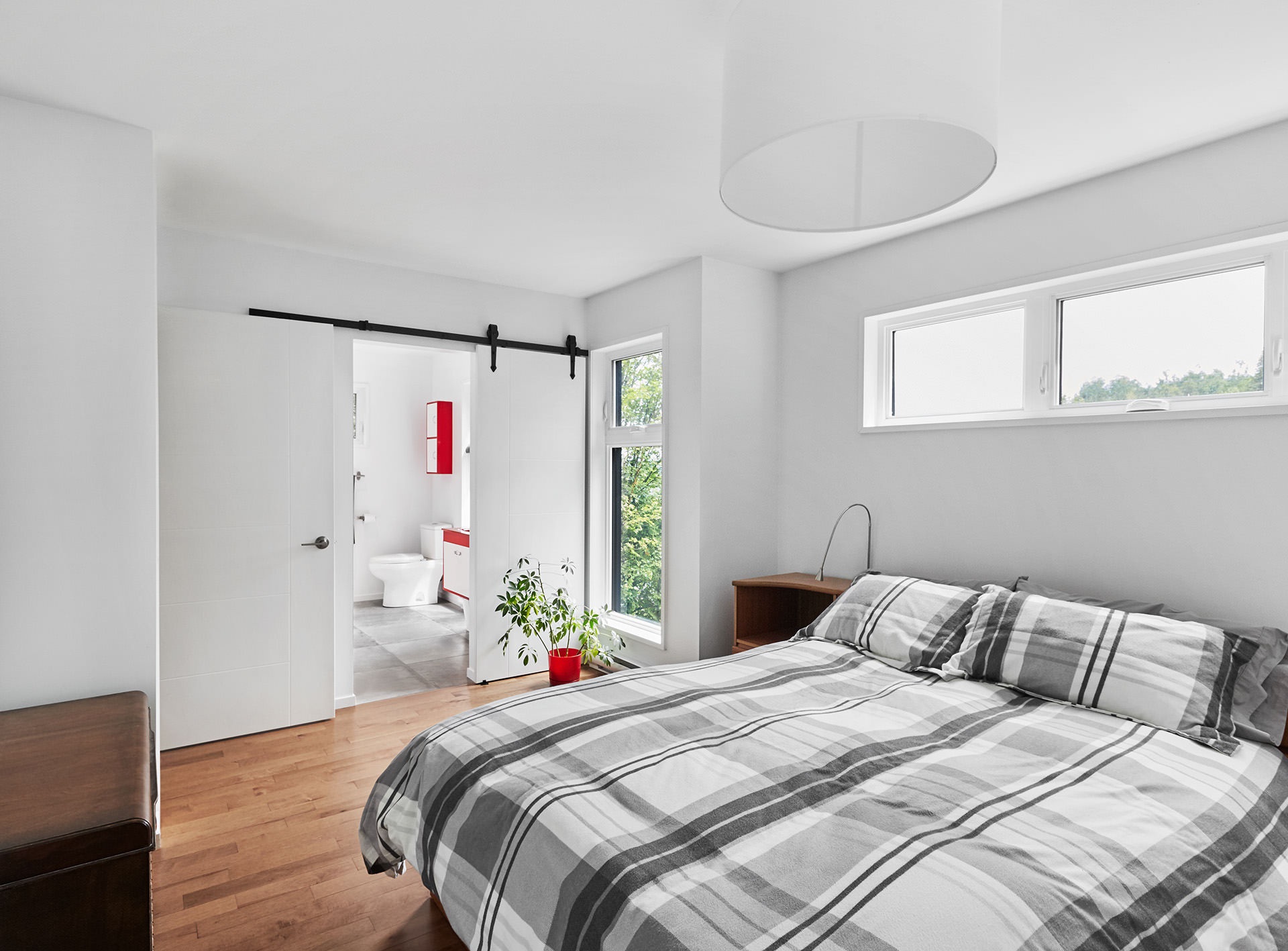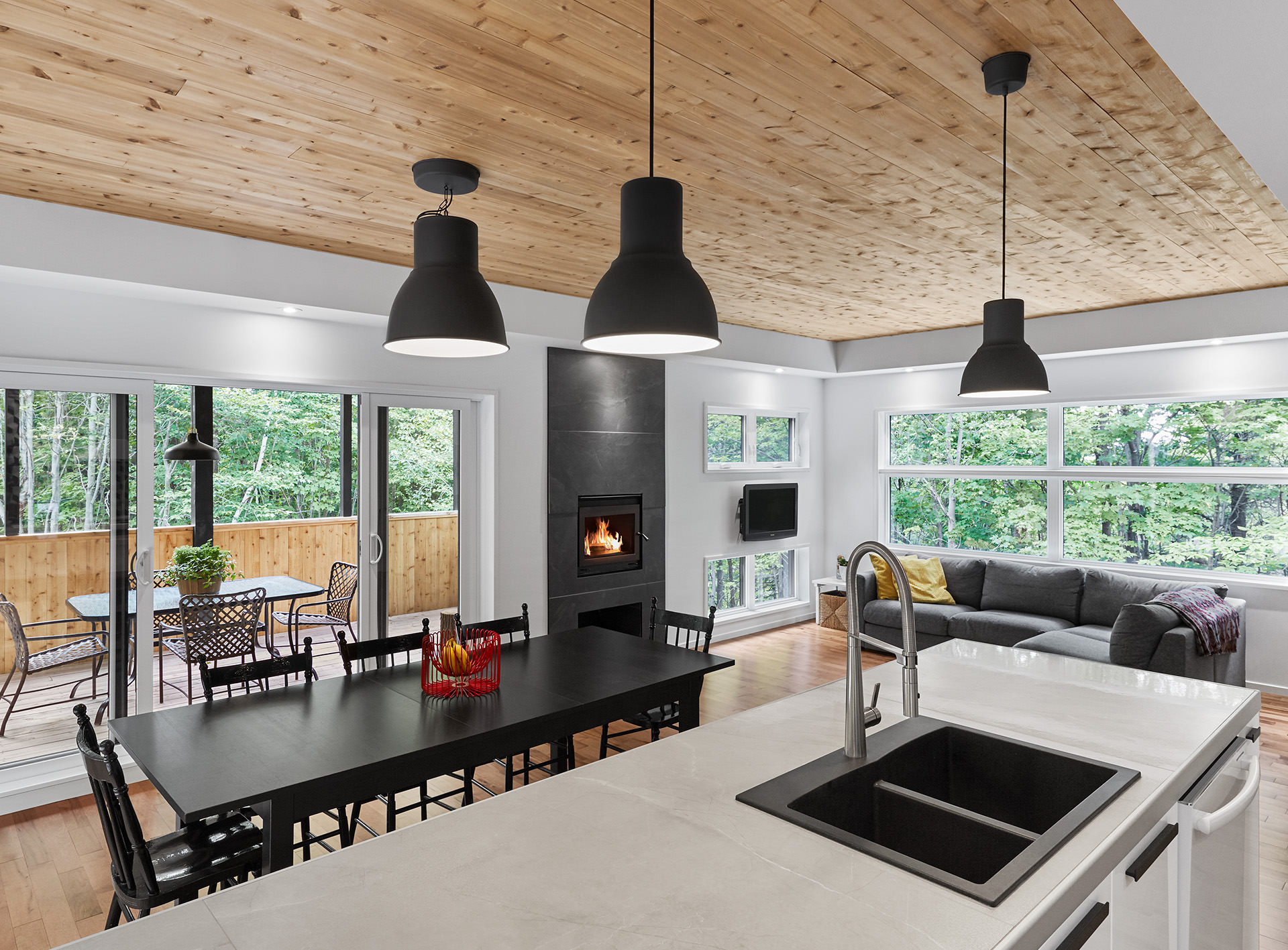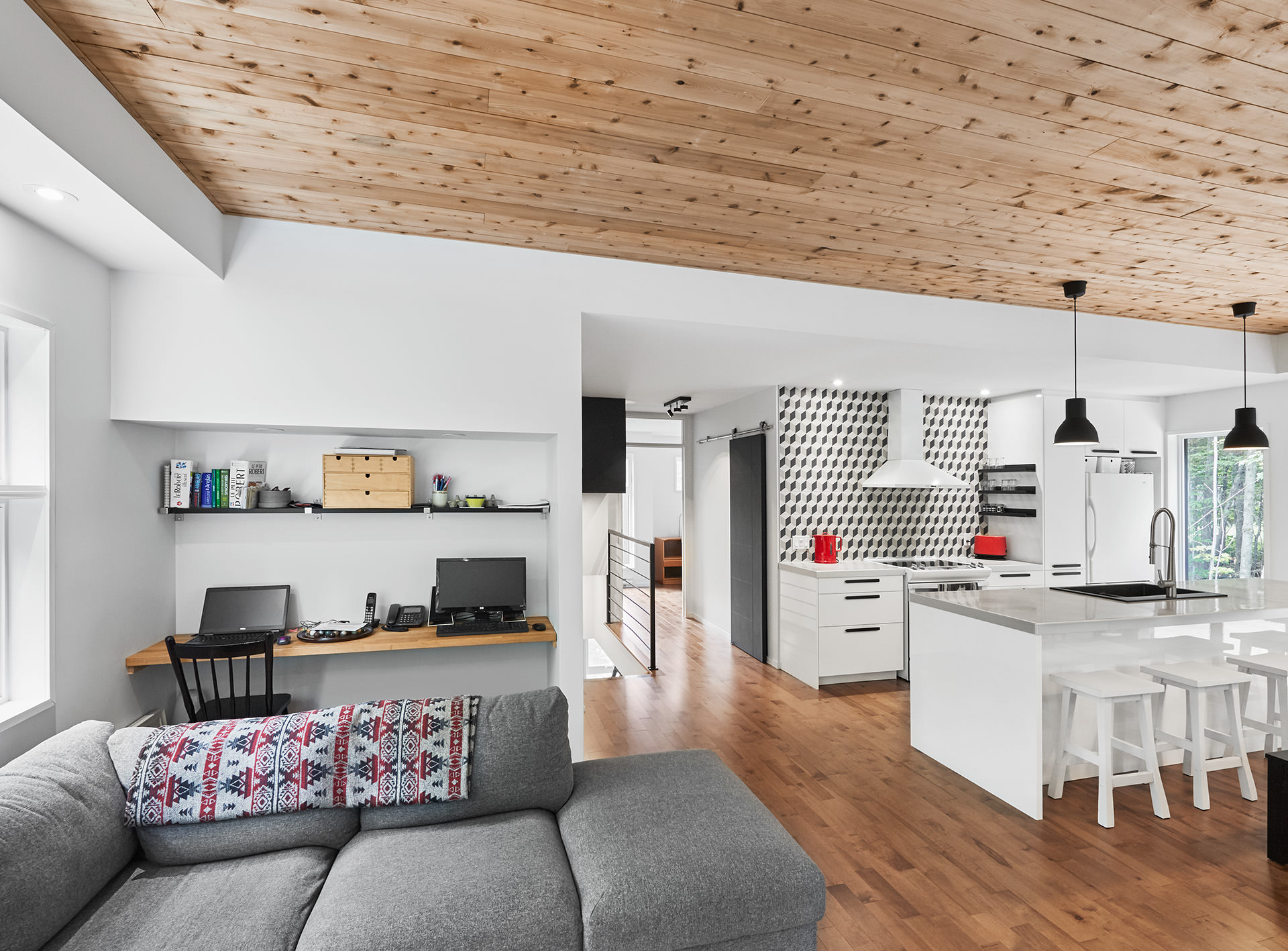 D'une simplicité, cette demeure aux inspirations scandinaves, s'intègre doucement dans son environnement et s'adapte au style de vie des occupants. Au final, on découvre une vision revisité de la résidence de montage laurentienne mariant pureté et nature.