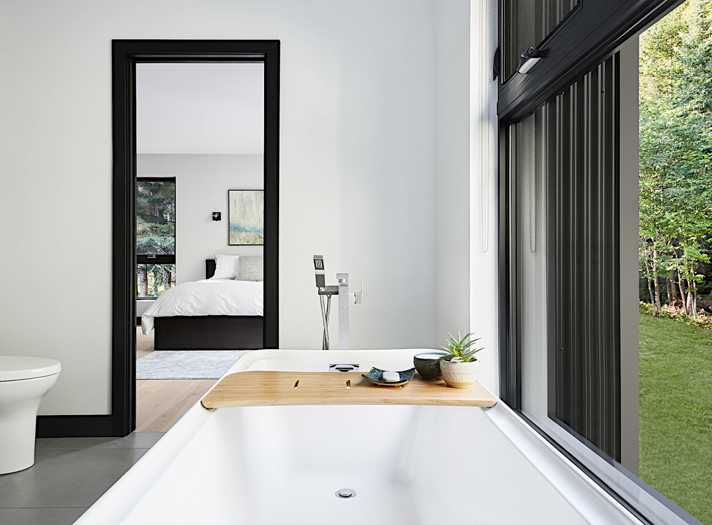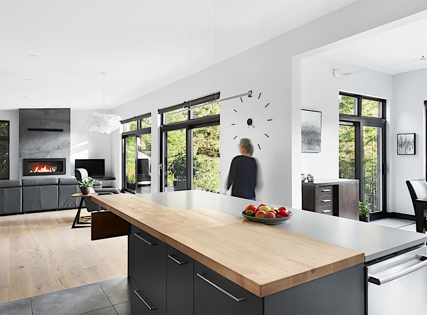 Que ce soit pour admirer le lever du soleil en kayak sur le lac, chausser leurs skis de fond en hiver ou enfiler leurs pantoufles devant le foyer, Mme Julien et M.Lalonde peuvent amplement profiter du merveilleux site qu’ils ont choisi, dans cette demeure parfaitement conçue pour eux.