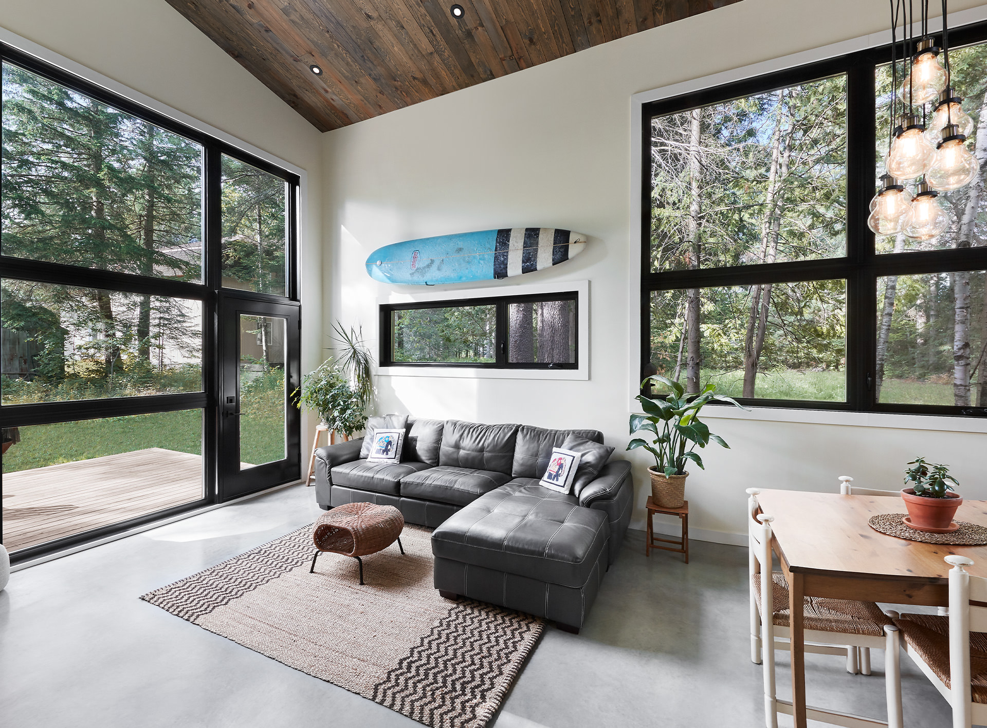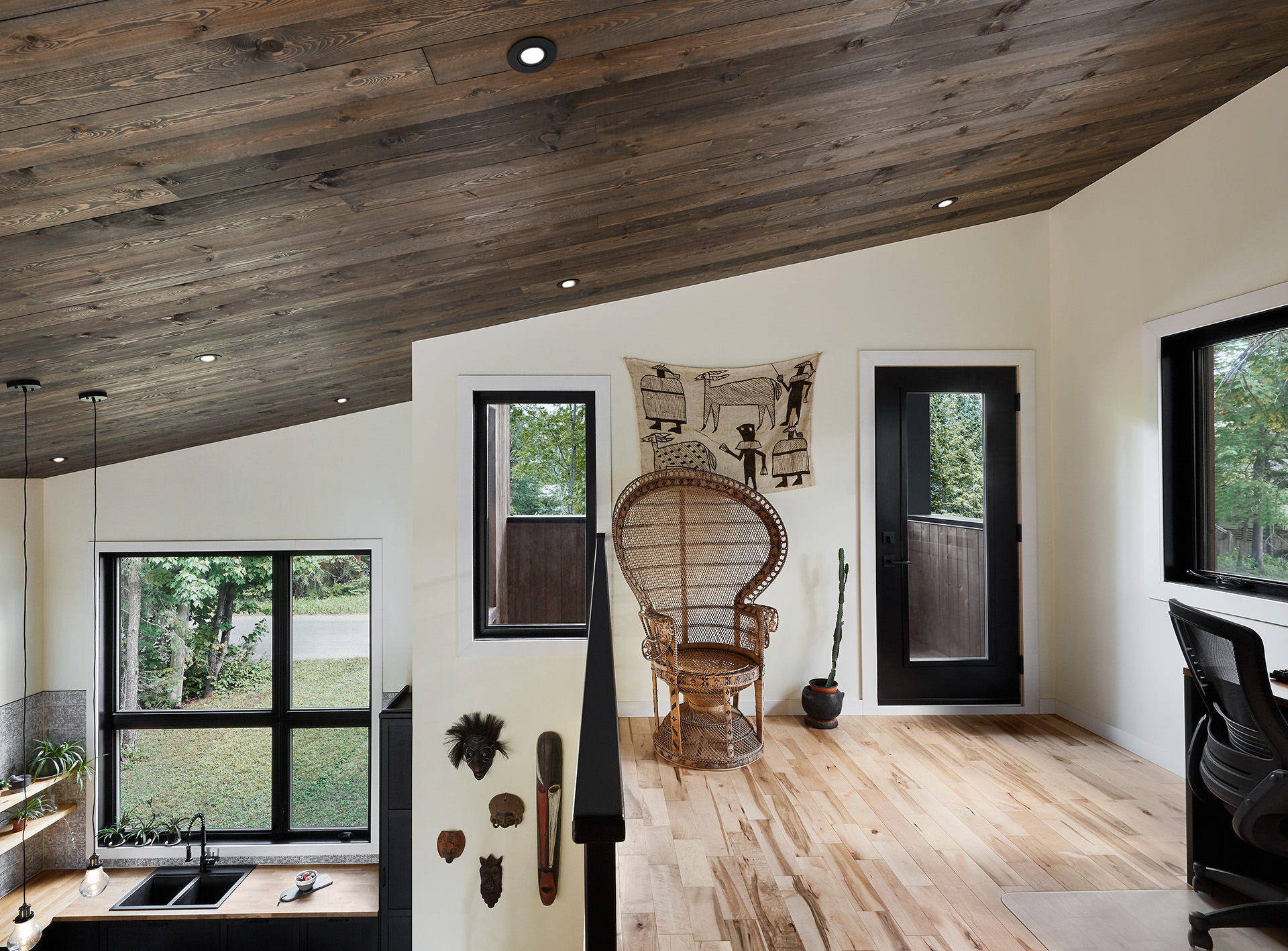 Le Havre de Raphael est à son image ; décontracté, libre et inspiré par les voyages! Cette résidence aurait été aussi bien implantée sur le bord d’une plage d’Hawaï qu’à flanc de montagne dans les rocheuses de l’Ouest canadien. Mais c’est ici, dans ce décor laurentien, que l’on peut contempler les rayons de soleil présents d’Est en Ouest de ce charmant refuge.