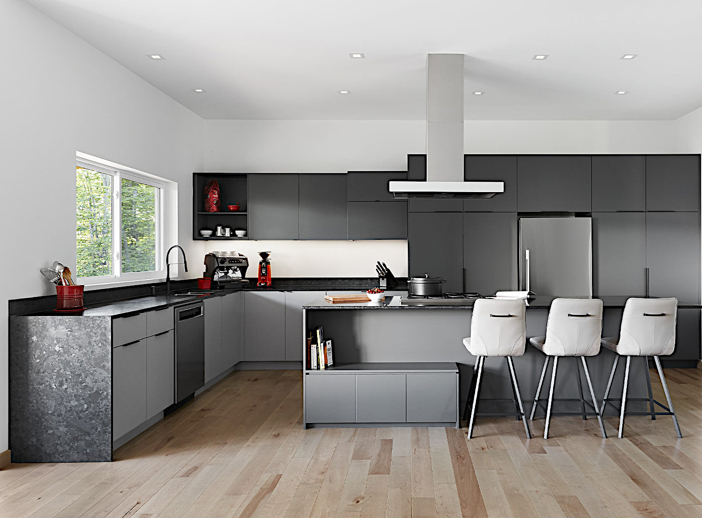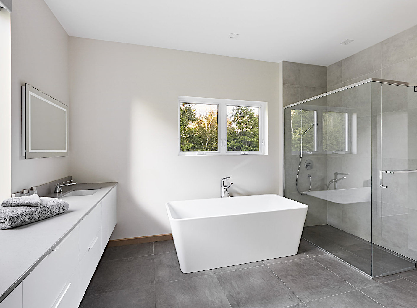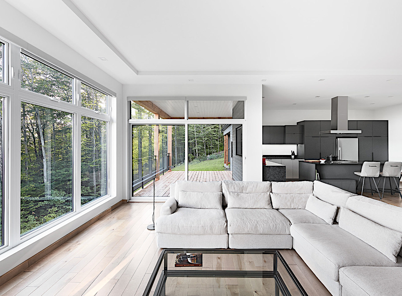 C’est ainsi que nous retrouvons une résidence implantée franc sud, avec une vue sur la nature et un maximum d’ensoleillement. Au rez-de-chaussée, tout y est : aire de vie fenestrée, mudroom discret et fonctionnel, grande cuisine avec rangement, salon avec foyer au gaz, chambre et salle de bain des maîtres. Nul besoin de descendre au niveau inférieur pour répondre aux besoins quotidiens des occupants. Par contre, le rez-de-jardin offre une multitude de possibilités avec ses chambres supplémentaires, la salle de bain secondaire, le rangement et la grande salle familiale.