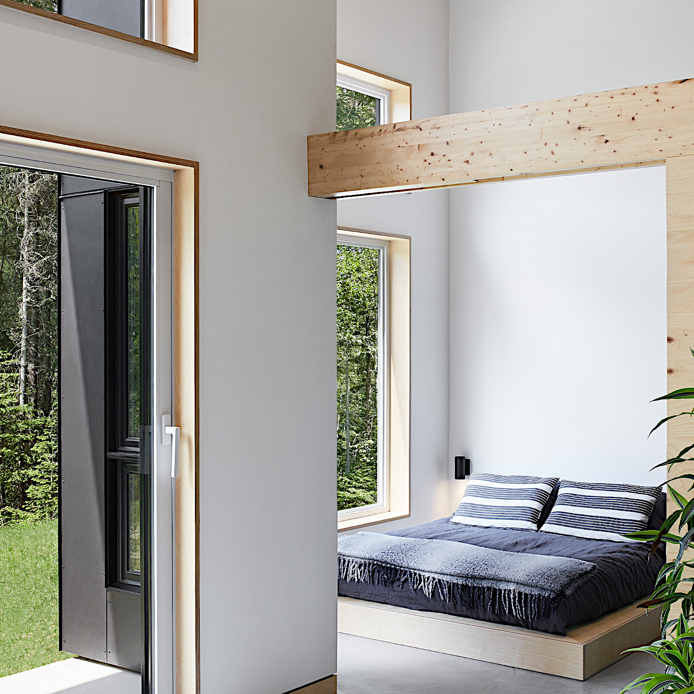 La résidence du MARAIS est délicatement déposée devant une étendue d’eau paisible avec comme voisinage poissons, amphibiens et grands hérons. Cette maison laurentienne, au petit gabarit, a été conçue sur mesure pour un charmant couple actif en quête de minimalisme.