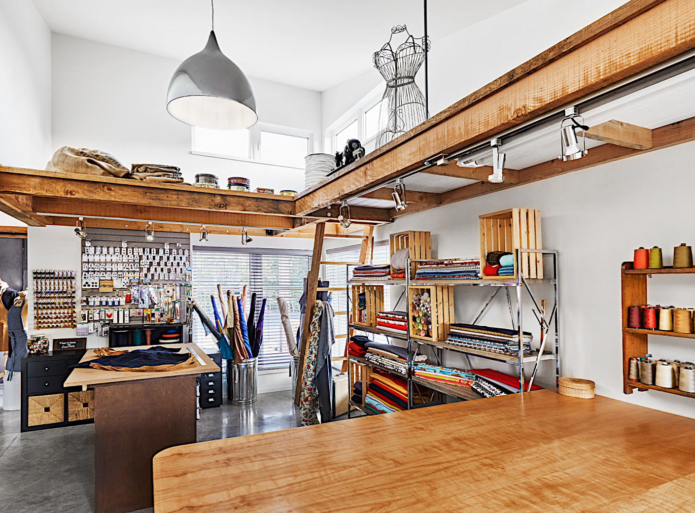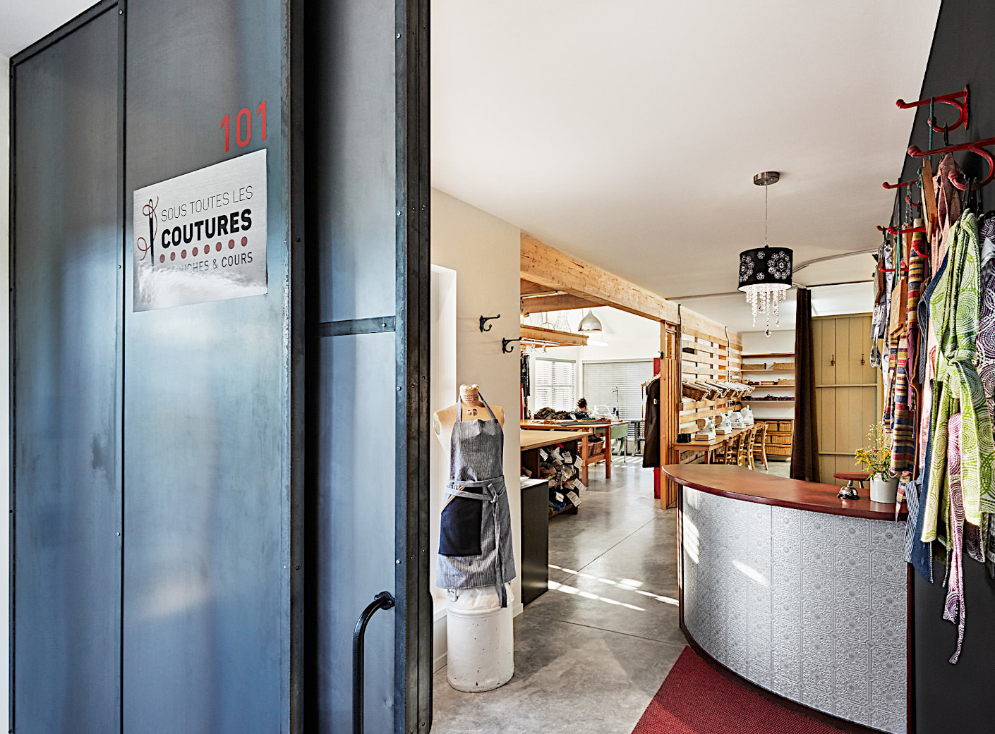 Conçu afin d'y accueillir un atelier de couture, des bureaux de professionnels en santé et un grand loft commercial, le nouveau bâtiment répond aux besoins de tous. Grande fenestration, balcon intime à l'étage, plafond cathédrale et une cuisinette commune, tout est pensé afin que chacun apprécie son lieu de travail.